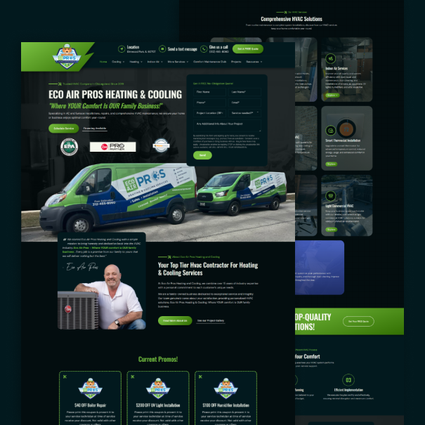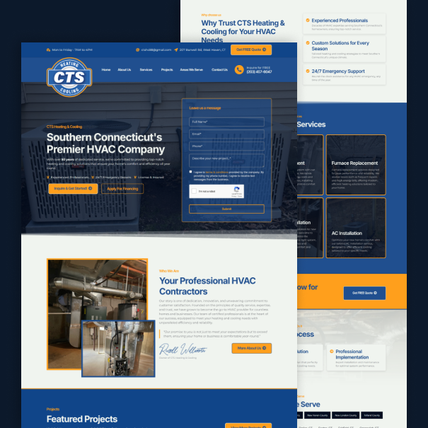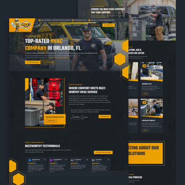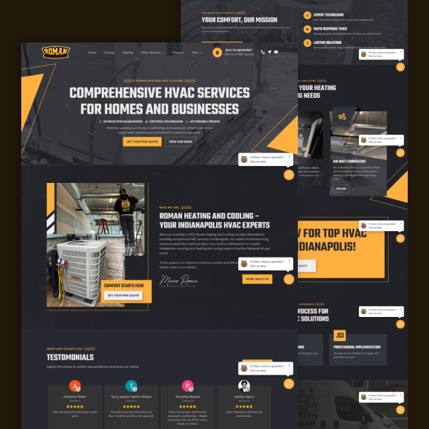 Highlight your HVAC services, customer testimonials, and portfolio to build trust with potential clients.